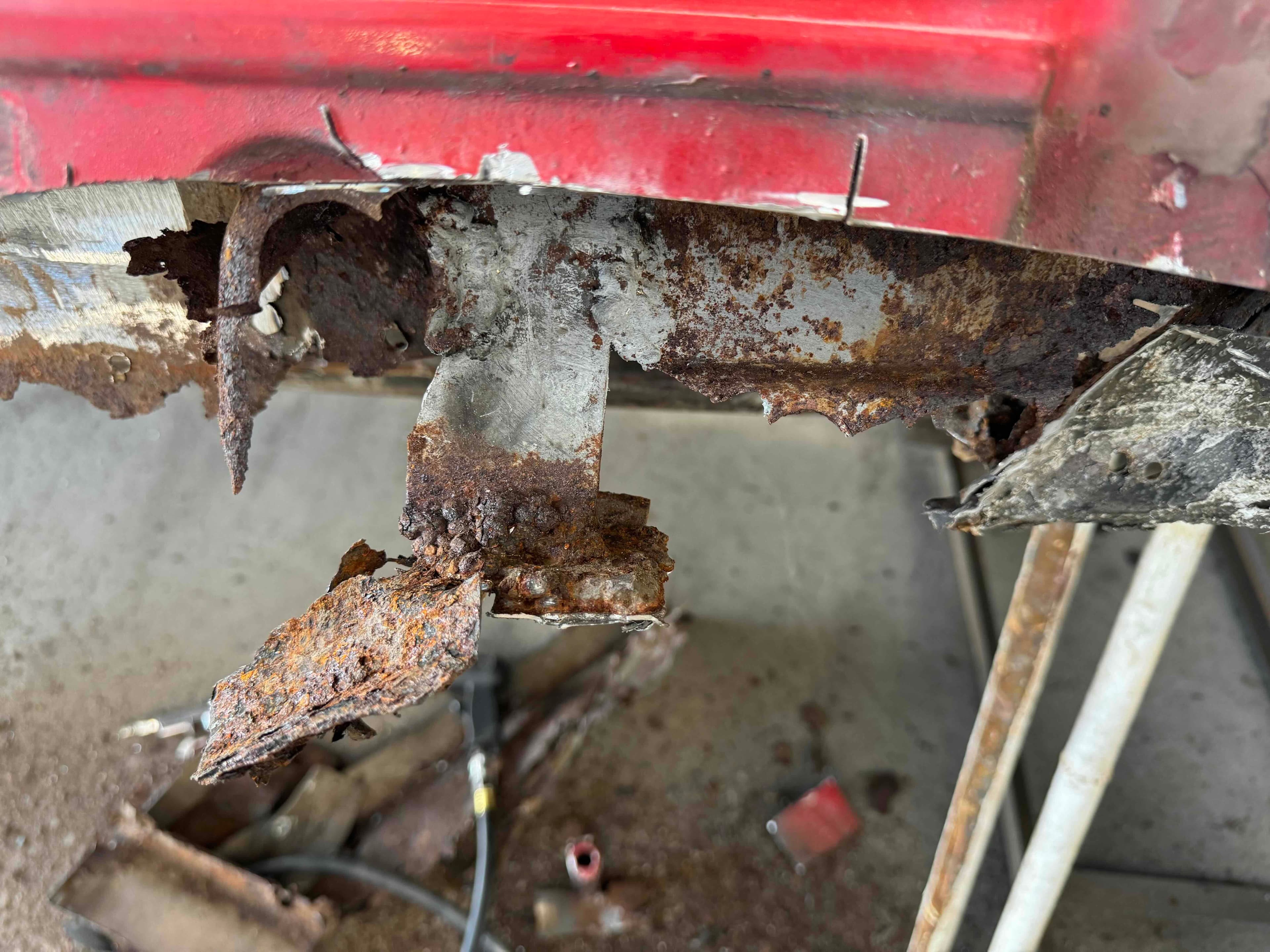 🔧 Demontaż uszkodzonego progu – usuwamy zniszczony element, aby ocenić stan konstrukcji pod spodem.